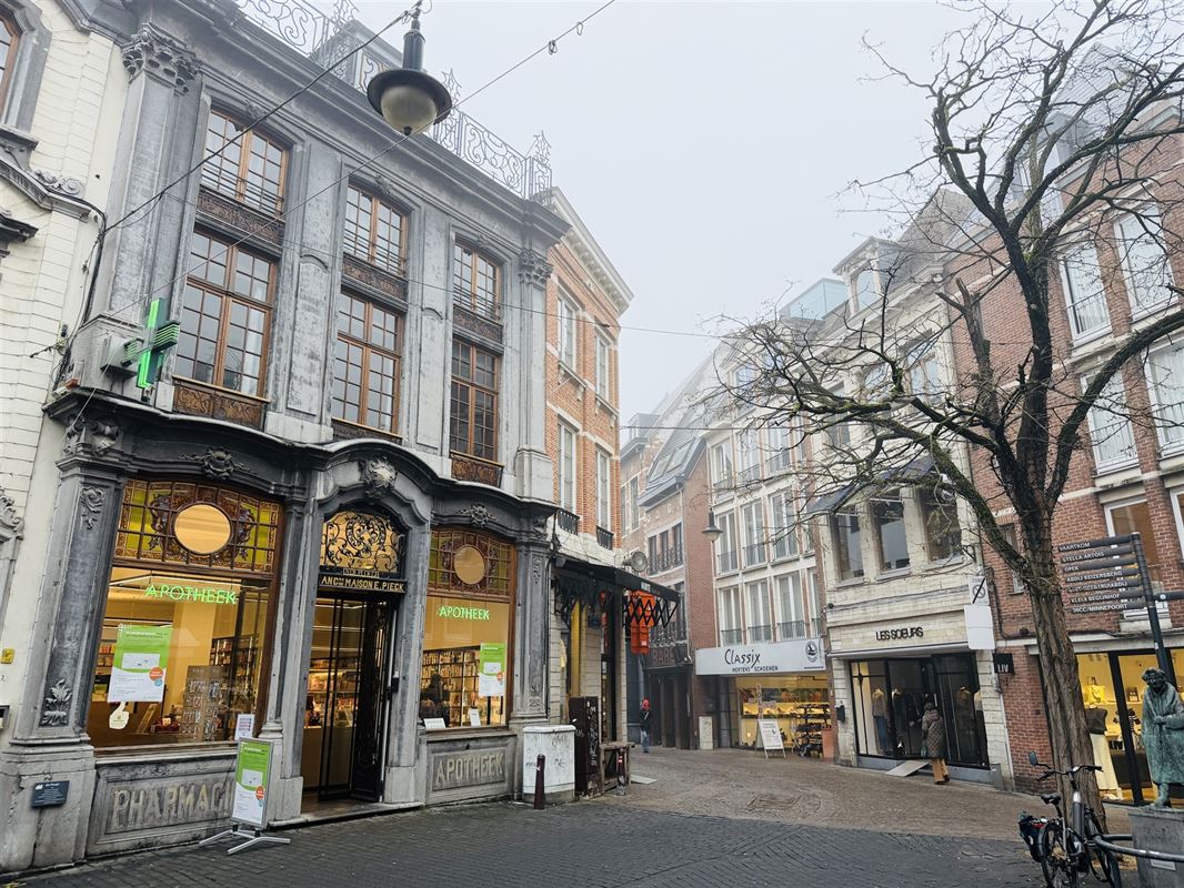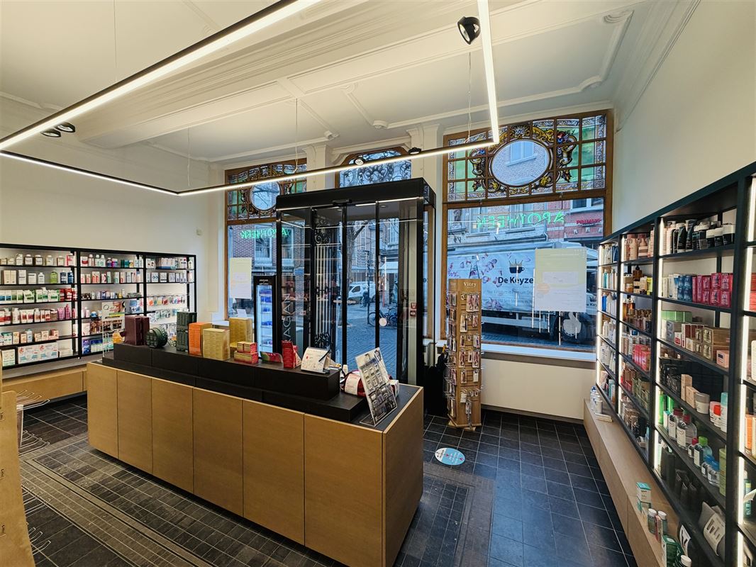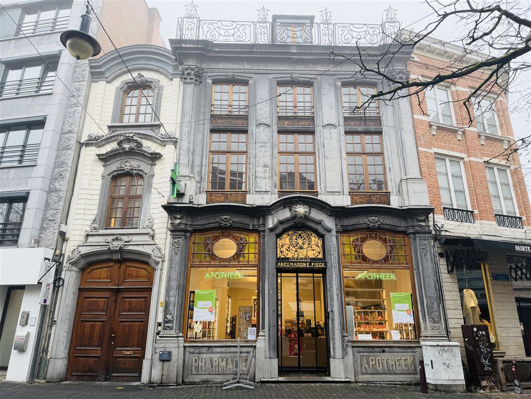 In the heart of Leuven, on the corner of the coveted Mechelsestraat, we find this beautifully restored building with extreme charm and good visibility. The monumental facade features 2 large windows with stained glass decoration and richly decorated entrance area.