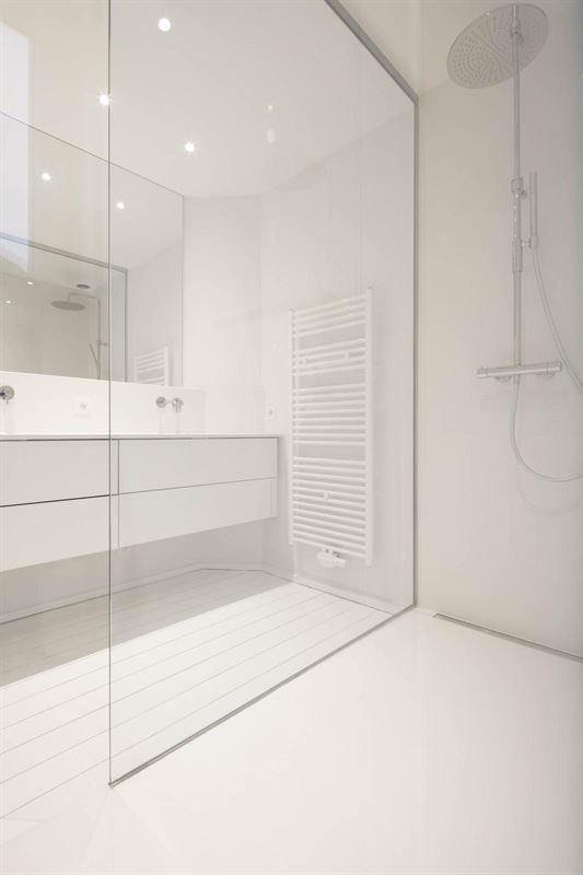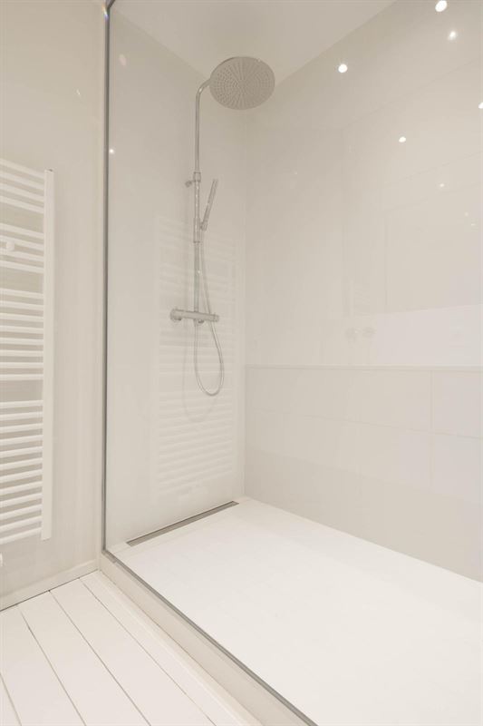 Au premier étage on trouve une chambre spacieuse (16m2) avec un beau parquet. La salle de bain élégante dispose d'un double lavabo et d'une douche a l'itallienne, l'endroit idéal pour se détendre après une longue journée. Toilette séparée. Au deuxième étage, nous trouvons 2 autres chambres sous les toits ( 12m2 et 7 m2) équipées de fenêtres velux et d'armoires encastrées.
