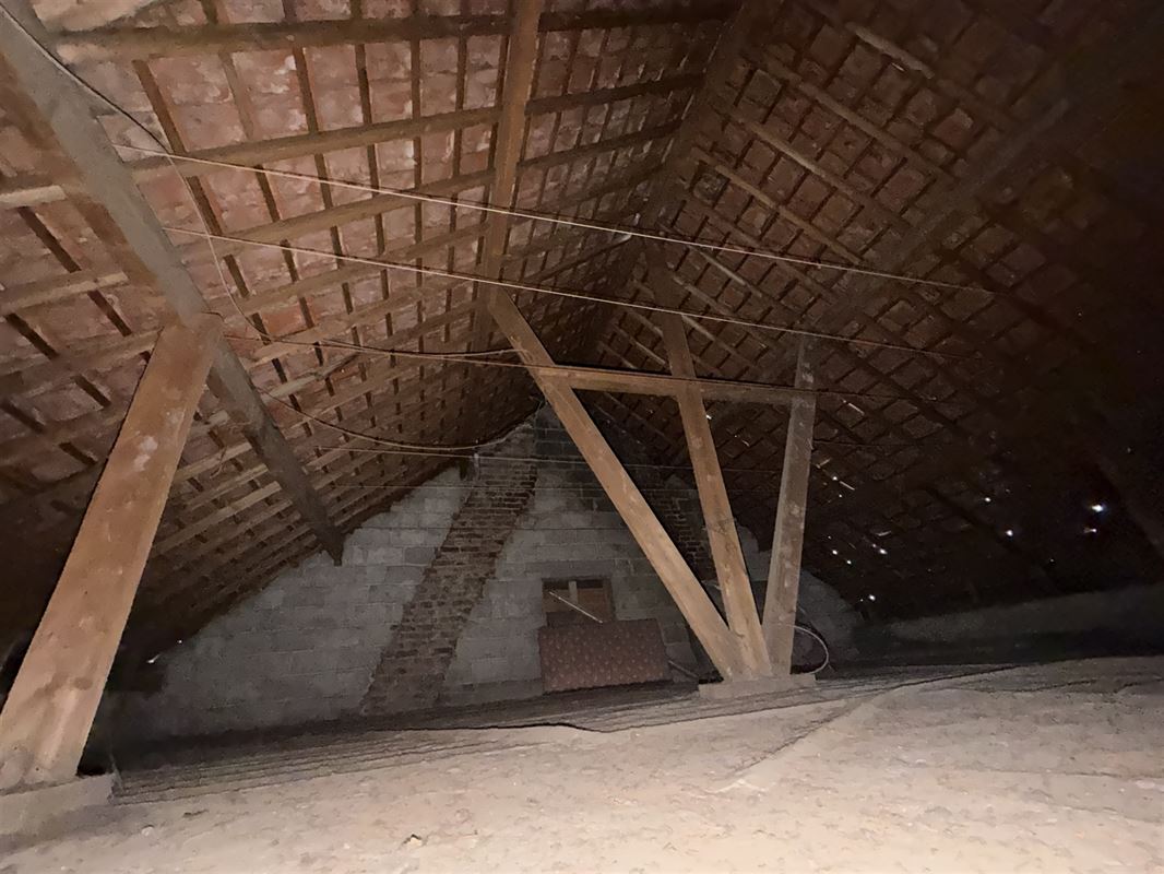 De nachthal heeft een charmant balkonnetje met glas in lood aan de voorzijde van het gebouw. Een vaste trap leidt naar de zolderverdieping : het dak is in goede staat maar is niet geïsoleerd. Deze dakverdieping kan als hobbyruimte of als extra slaapkamer(s) met badkamer ingericht worden.
